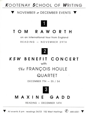 Maxine Gadd read at: Kootenay School of Writing 1987 - 1995