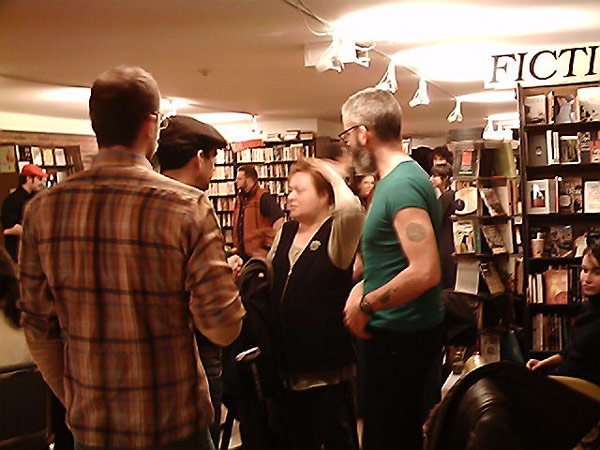 Photo: Clint Burnham (green T-shirt) at Spartacus Books