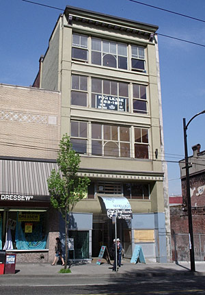 | Spartacus Books is a non-profit collective that has operated in downtown Vancouver for 20 years. The gap you see in beside this building is where Spartacus' former home once was - burnt down in either a popcorn blower or methamphetamine lab accident, depending on who you ask. The KSW has held most of its readings at Spartacus since 2006, after a nomadic year trying out various other options. Unfortunately, rumours are now circulating that the same landlord who forced KSW out of its Hamilton St. space is about to force Spartacus out as well.